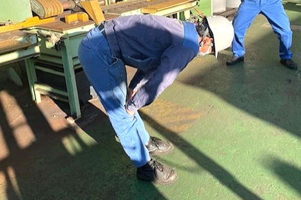仕事開始前にみんなでラジオ体操!眠った体をしっかり目覚めさせ、元気に1日をスタートします。さあ、今日も安全第一でがんばりましょう!