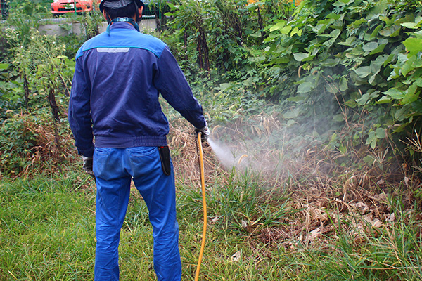 構内の駐車場を中心に除草剤を散布中!広い敷地にたくさん散布するのは大変ですが、緑地を管理するのは達成感のある仕事です。もうすぐお昼休憩、一息つけるまであと少し!